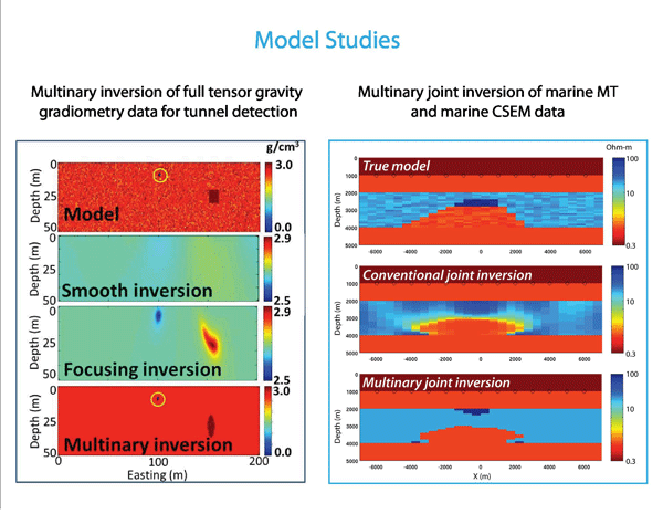 Inversion searches for models with an arbitrary number of expected petrophysical properties. Both nonlinear and linear operators are suitable. Applicable to joint inversion of multimodal geophysical data.
